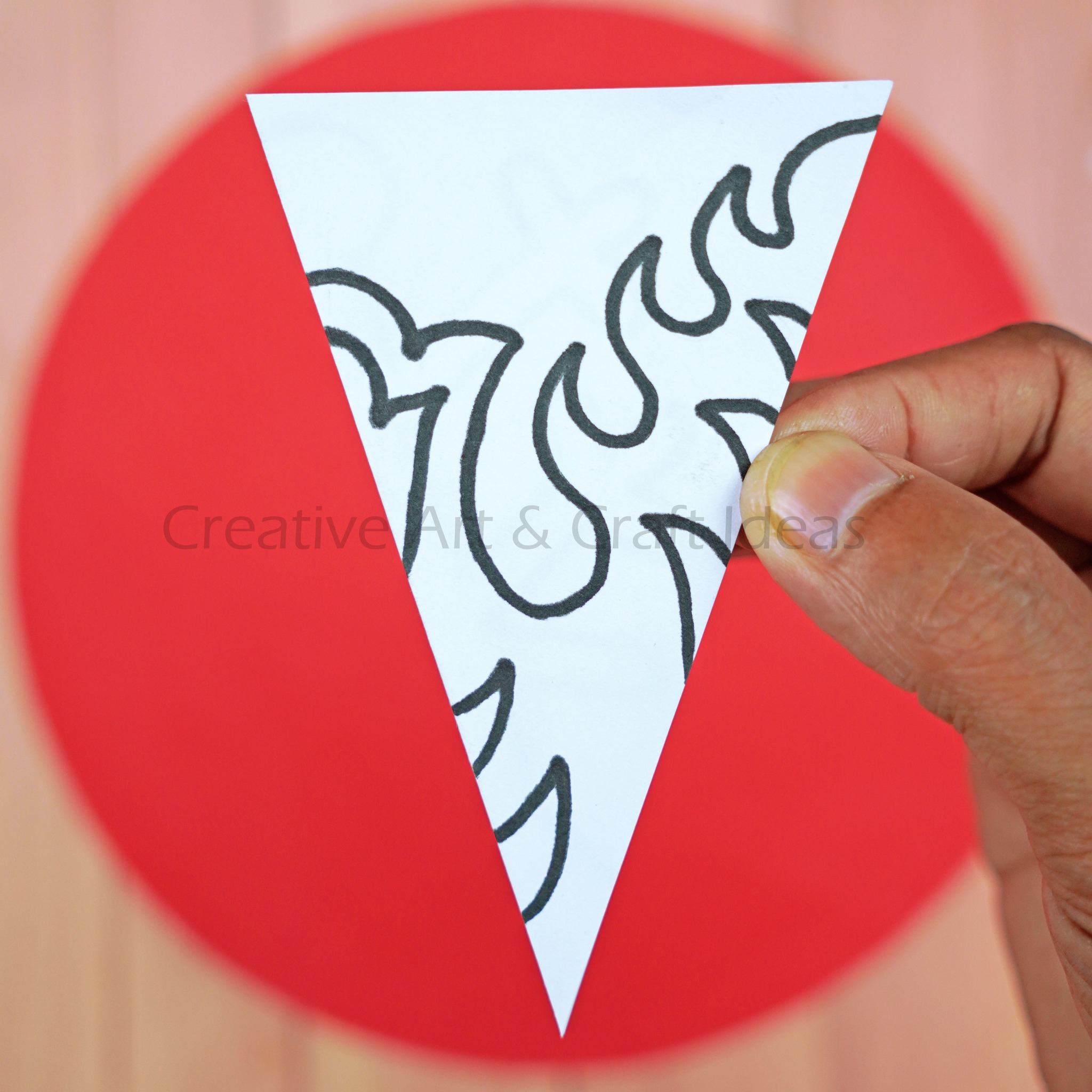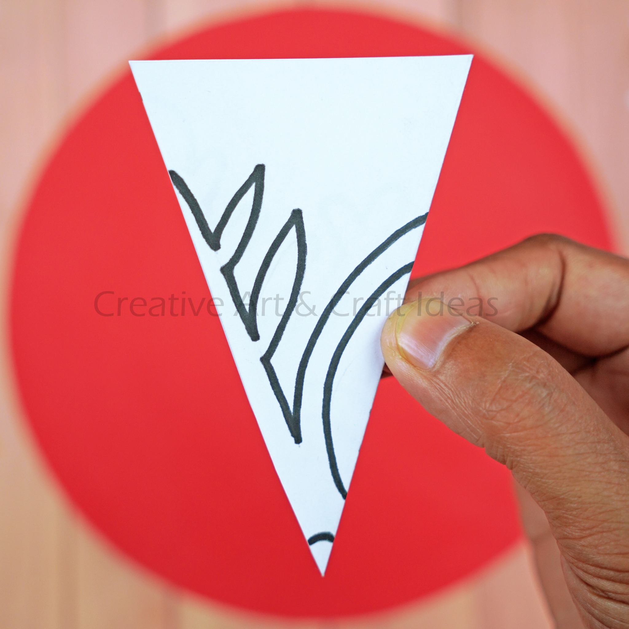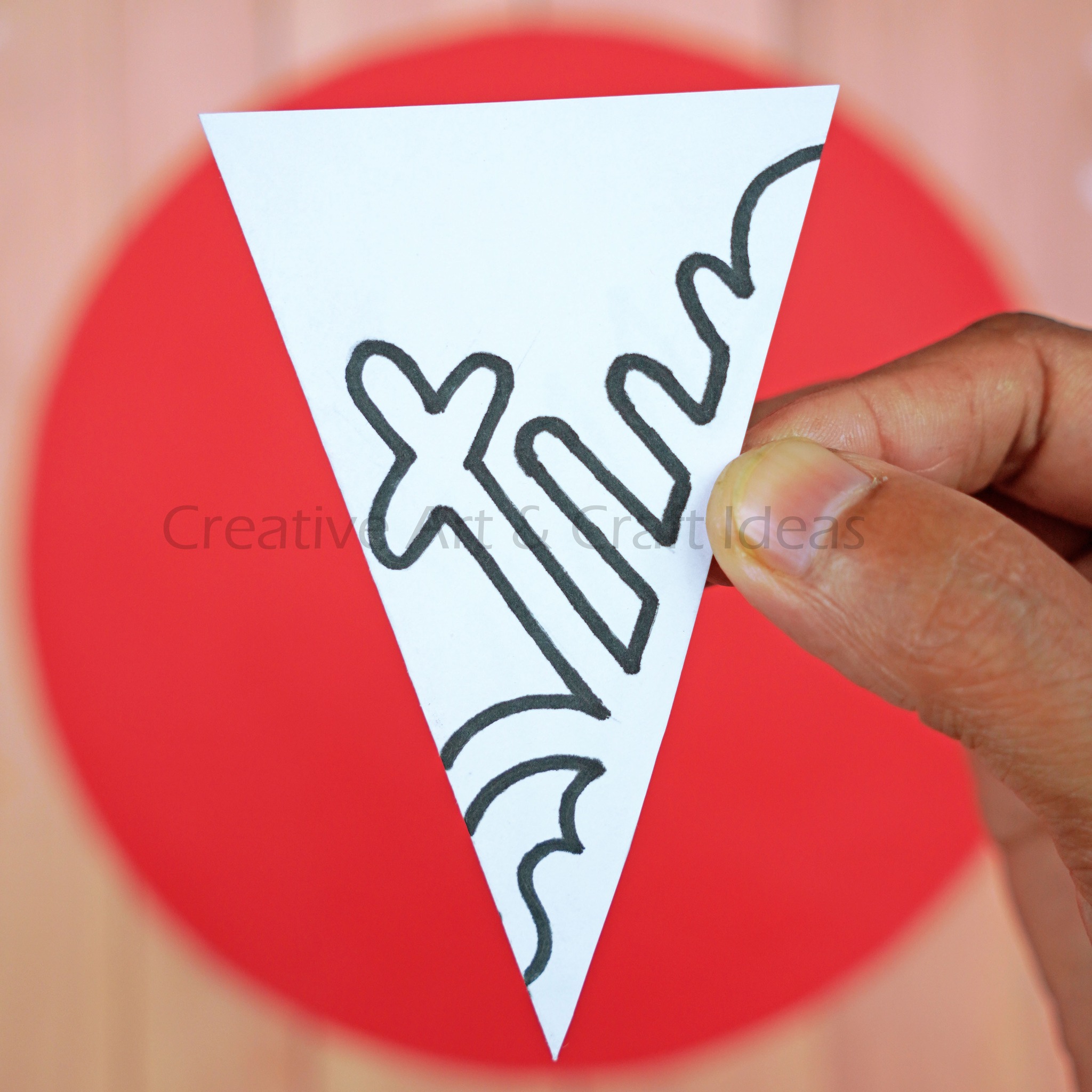 Для цього квадратний аркуш потрібно скласти навпіл тричі, щоб утворився гострий трикутник. Візерунок вирізається так само, але результат матиме 8 променів.