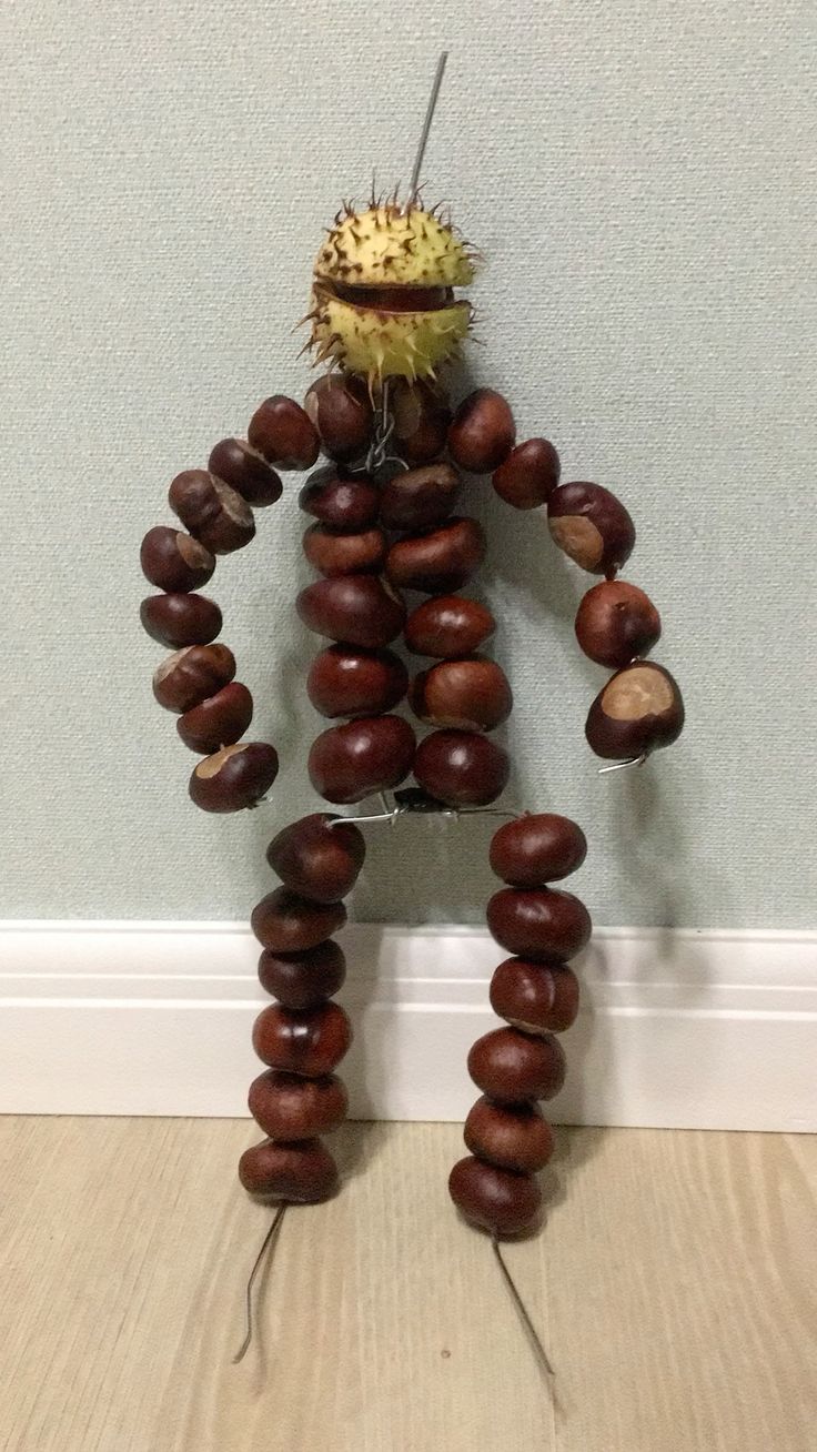 Черепаха: Панцир — велика розкрита шишка, голова та лапки — з пластиліну.