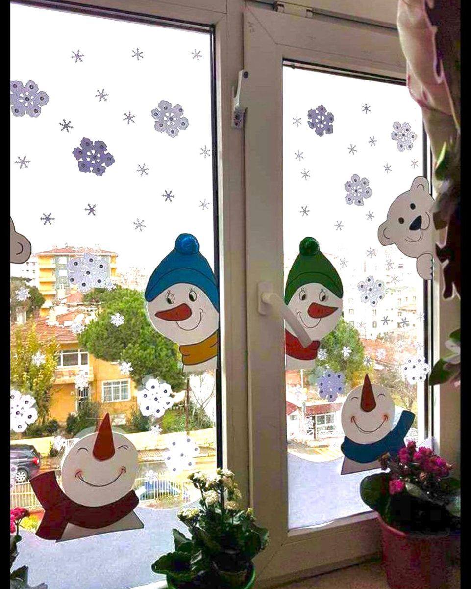 Сніговики та ведмеді: ідеї прикрашення вікон з шаблонами