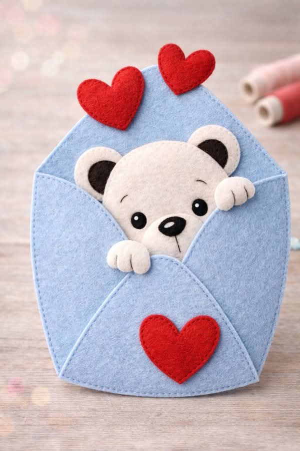 Валентинка “Ведмедик в конверті” з фетру з шаблонами