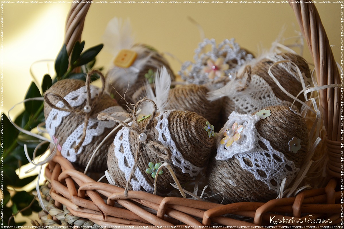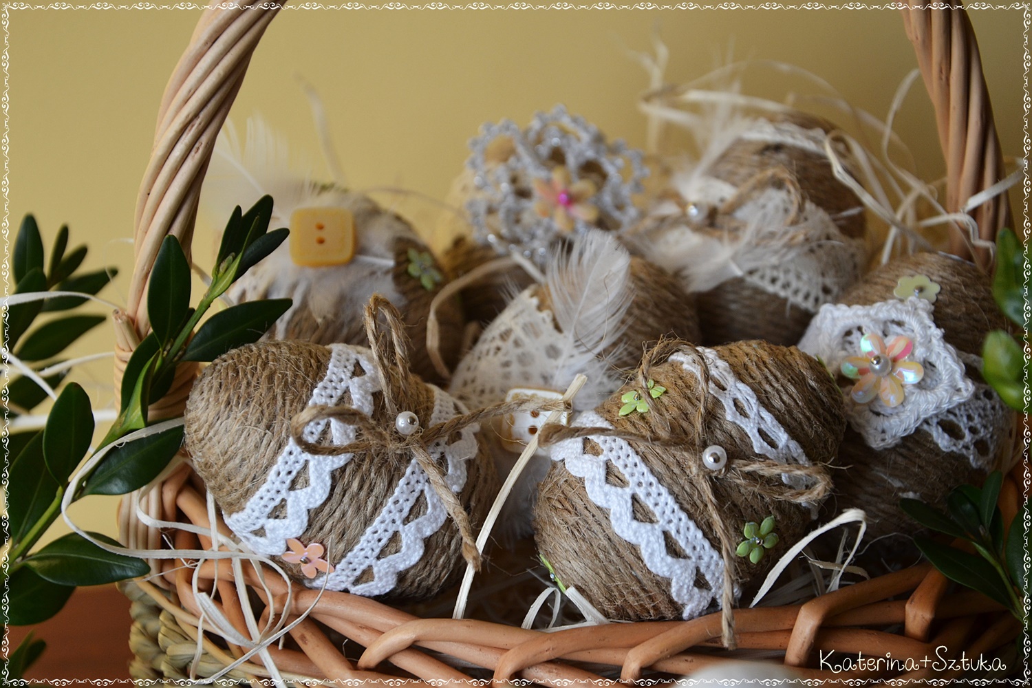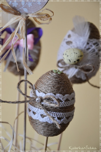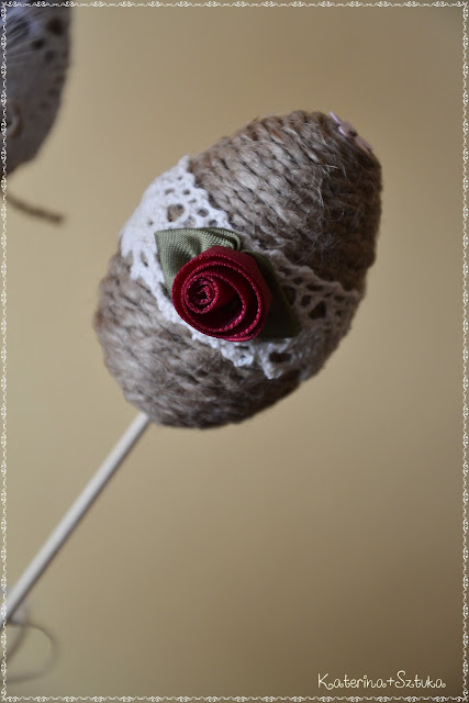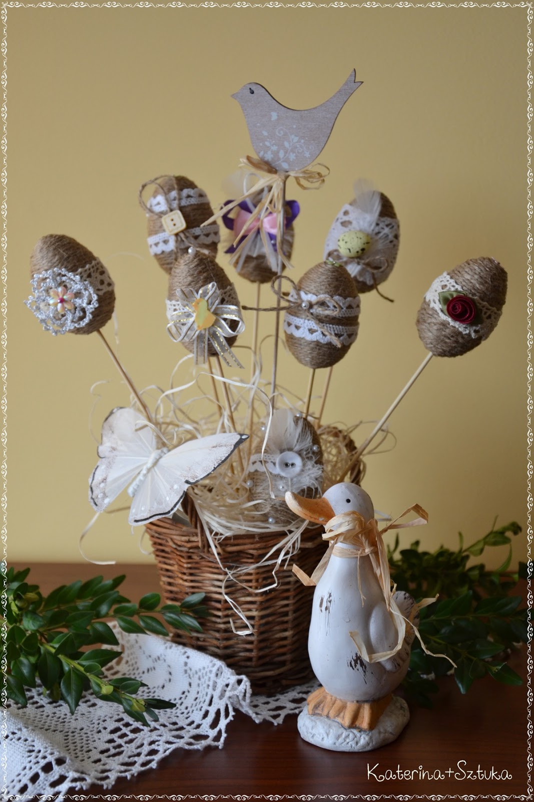 PISANKI, JAJKA ZE SZNURKA JUTOWEGO NA PATYKU