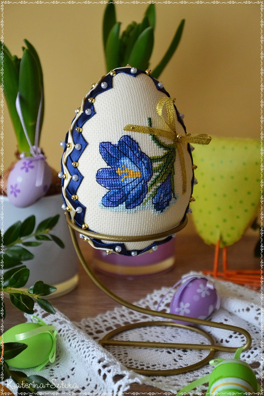 JAJKO, PISANKA Z KROKUSEM (haft krzyżykowy + karczoch)