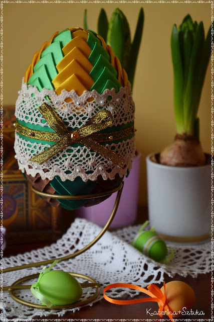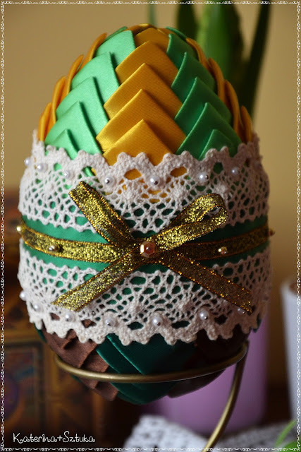 ...i znów mam kolejne jajko ale tym razem duże 15cm i całe zw wstążek i koronek z dodatkiem koralików.